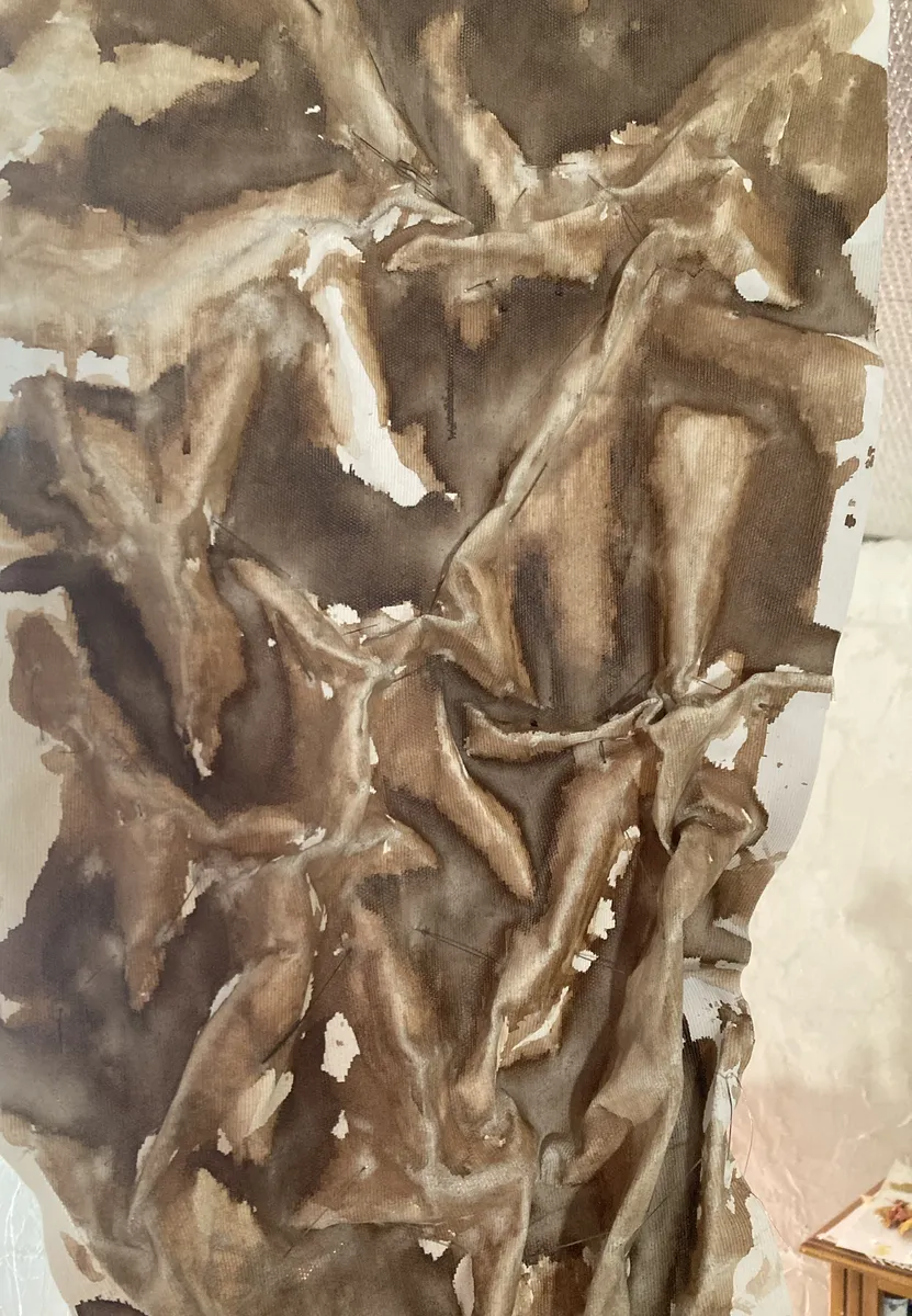 toile cousue et brou de noix - sewn fabric and Walnut shelll extrait