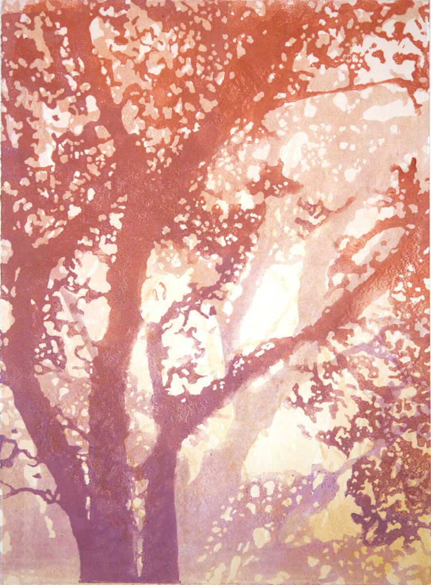 Filtered sun - relief, 2023; Akua intaglio on Arches 88; 18"x18"